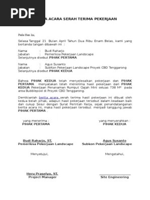 Demikian surat serah terima pembangunan ini dibuat rangkap . Contoh surat serah terima tugas. Masa garansi ini akan dihitung selama 3 bulan semenjak bast ditandatangani konsumen,. Berita acara serah terima akhir pekerjaan proyek bagian proyek. Doc berita acara serah terima akhir pekerjaan proyek . Contoh berita acara serah terima pekerjaan proyek. Pemeriksaan penyerahan pekerjaan dan pemeriksaan administrasi pekerjaan. Dilarang menentukan kriteria dan persyaratan bagi penyedia barang/jasa yang diskriminatif. ______ bulan ______ tahun ______ . (3) ppk dan penyedia menandatangani berita acara serah terima. Serah terima pekerjaan akhir (fho) akan dilaksanakan pada tanggal. Serah terima pertama pekerjaan konstruksi. Artikel contoh surat serah terima pekerjaan.